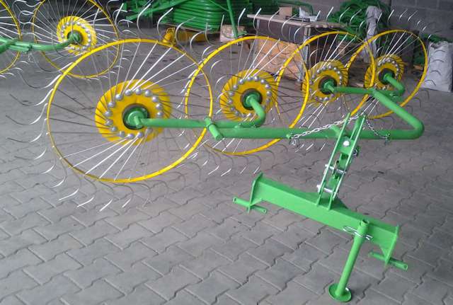 Страна-производитель: Польша Фирма-производитель: Bomet Состояние: Новое Особенность: Универсальные Тип тракторных грабель: Грабли-ворошилки Цена договорная Ворошилка для сена (гребка) 5-ти колесная польского производства Bomet - сельскохозяйственная сенозаготовительная техника, рассчитанная на агрегацию с мини-тракторами, мощность которых 16 - 40 л.с.